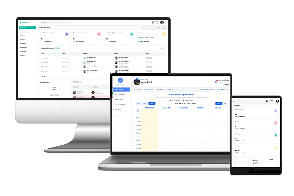 Running a dental practice can be demanding, with constant tasks ranging from patient communication and appointment management to reporting and updating records. And at the heart of it all is what truly matters — delivering outstanding care to your patients.Dentricore helps you streamline these responsibilities so you can manage your practice and your patients with greater efficiency, clarity, and ease.